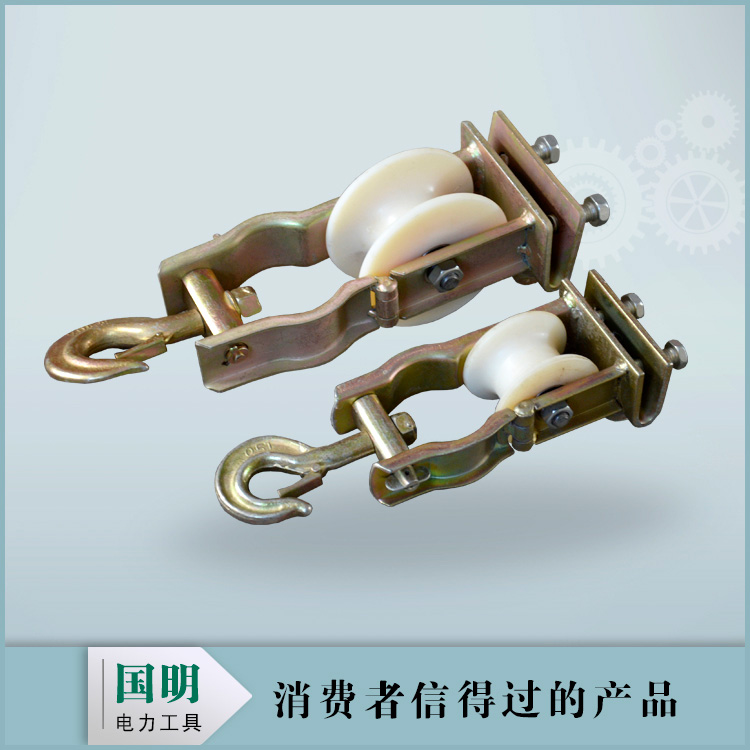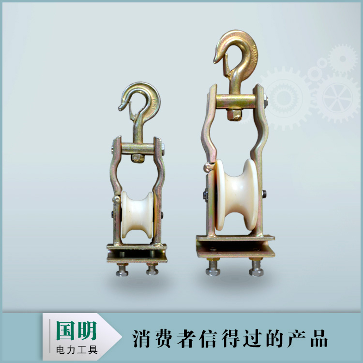 用于展放小面積的導(dǎo)地線(xiàn),可作掛鉤使用,也可作為朝天式使用,按材質(zhì)分為鋁合金和MC尼龍輪。